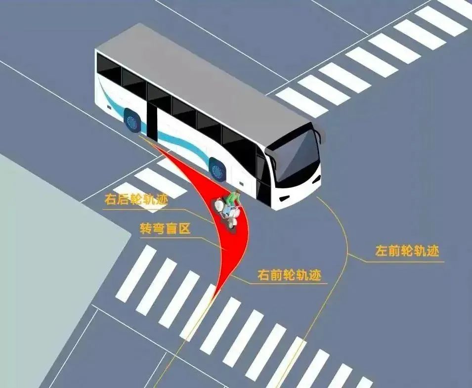 因此,大型车辆在路口右转时,“停车”是主动防范的必然选择,也就是大型车辆驾驶人进入路口后先停稳瞭望,确保安全后再起步。