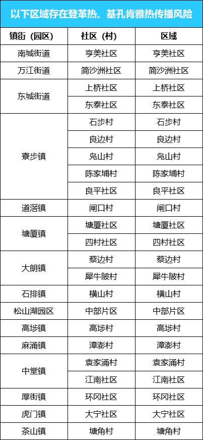 请在上述区域生活、工作或活动的市民朋友们注意做好个人防蚊灭蚊,外出建议穿长衣长裤或喷洒驱蚊水;积极行动,清理住家及周围积水,清除或倒置各种闲置可积水容器,保持环境整洁。家中建议使用灭蚊片、驱蚊水、电蚊拍、喷雾罐、杀虫剂等,并使用纱门纱窗。一旦出现发热、皮疹、肌肉关节痛等症状应及时就医,主动告知居住在登革热和基孔肯雅热处置区,并配合开展登革热和基孔肯雅热相关检测。