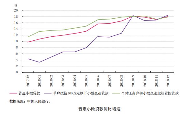 截至2018年末,全国普惠口径小微企业贷款余额8万亿元,同比增长18%,增速比上年末高8.2个百分点。