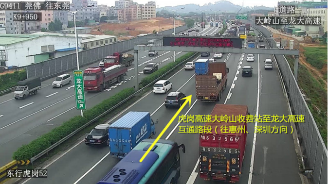 4.虎岗高速大岭山收费站至龙大高速互通路段(往惠州、深圳方向)发生拥堵时: