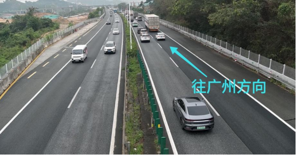 5.莞佛高速西行五点梅路段,节假日高峰时段京港澳高速车流量大,加上虎门港高速当前改扩建施工道路封闭,莞佛高速西行五点梅路段车辆通行集中,容易形成拥堵。