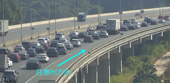 注意前方即将进入隧道路段,请司机服从现场民警指挥、有序轮候通行;或者提前从樟木头收费站出口、谢岗收费站出口下高速,从地方公路绕行前往惠州。