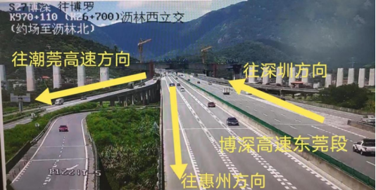 3.广龙高速公路(S6)东莞段东行(往深圳方向)K18至K19路段(匝道)。广龙高速公路东莞段的车辆转向广深高速公路上行驶,或者广深高速公路行驶的车辆转向广龙高速公路东莞段上时,易发生拥堵。