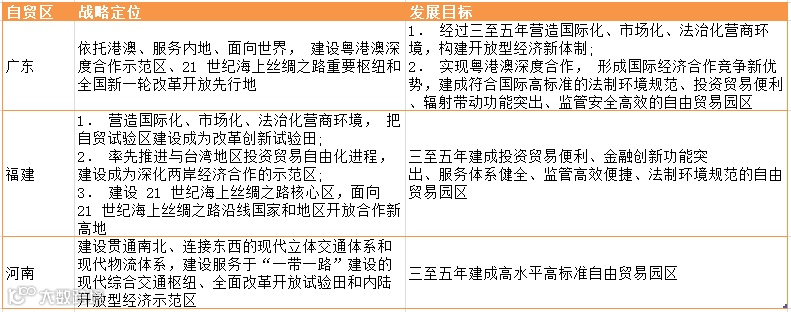 《贸易金融》杂志记者根据公开资料梳理三大试点自贸区战略定位和发展目标。