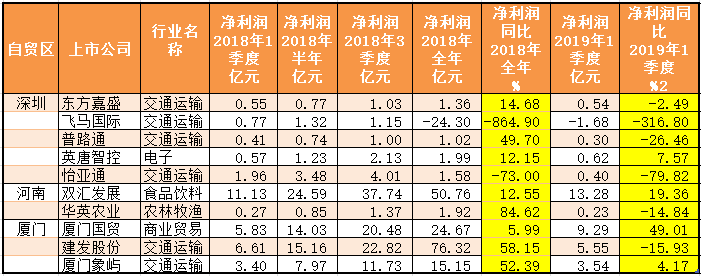 在试点城市三大自贸区中,有10家上市企业,其中深圳5家,河南2家和厦门3家。这10家上市公司属于交通运输行业(申万1级行业)的有6家,其余企业分别在电子、食品、农业和贸易这4中行业。