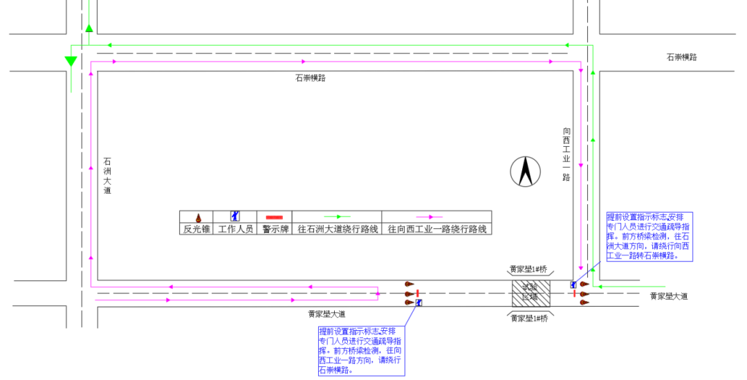 1)荷载试验期间,需对进行荷载试验的桥跨进行全封闭,对此针对进行荷载试验的桥段制定交通疏导方案,派专人进行交通疏导。 2)现场检测占道时间会根据检测进度适合调整,每座桥每天占道在3~8个小时。如遇恶劣天气等其它影响因素,检测时间相应调整。 |