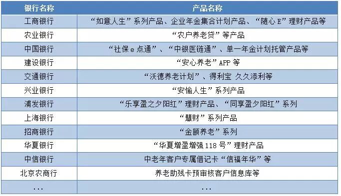随着养老金融业务的不断开展,各家银行各显神通,从行内服务架构、到产品输出都在不断地改变和创新。据不完全统计,截止目前有多家银行设立了专门的养老服务机构:中国工商银行养老金业务部、浦发银行投资银行部(业务负责)、招商银行养老金金融部、中国银行养老金业务部、中国民生银行资产托管部(业务负责)、兴业银行普惠金融部养老金融中心等。