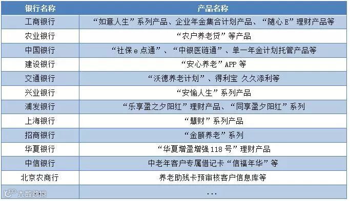 在产品输出层面,各大银行也是下足了功夫,《贸易金融》统计了各银行的养老产品: