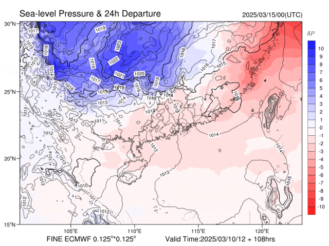 受较强冷空气影响,3月15-16日,广东省气温自北向南明显下降,天气转寒凉,海陆风力加大。