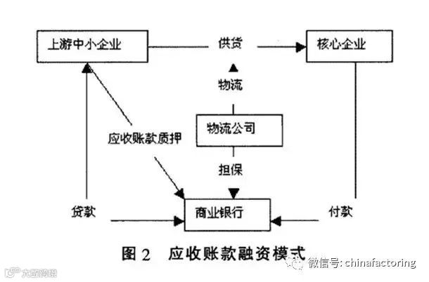 应收账款融资模式,是指以中小企业对供应链上核心大企业的应收账款单据凭证作为质押担保物,向商业银行申请期限不超过应收账款账龄的短期贷款,由银行为处于供应链上游的中小企业提供融资的方式。简单的说,就是以未到期的应收账款向金融机构办理融资的行为。在该模式中,作为债务企业的核心大企业,由于具有较好的资信实力,并且与银行之间存在长期稳定的信贷关系,因而在为中小企业融资的过程中起着反担保的作用,一旦中小企业无法偿还贷款,其也要承担相应的偿还责任。