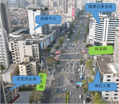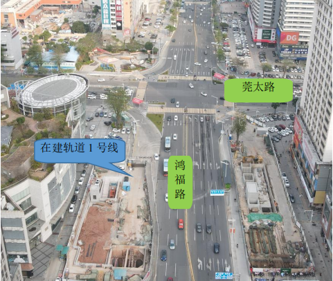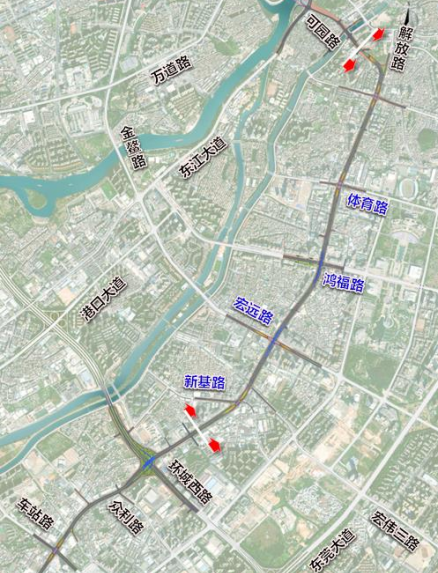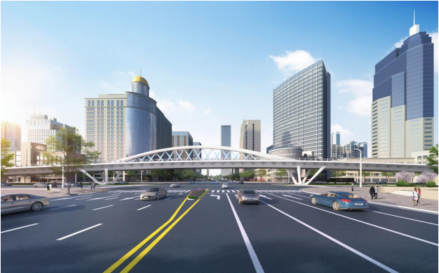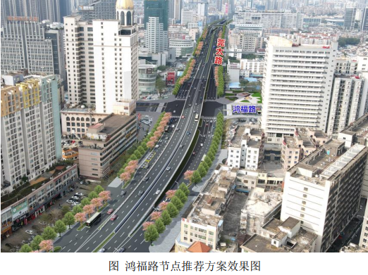 ▶鸿福路节点因地下复杂管线和规划限制,采用桥梁上跨形式,计划新建一座长约348米的高架桥,估算建安费约1.45亿元;