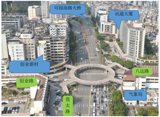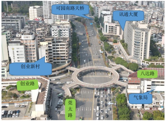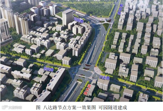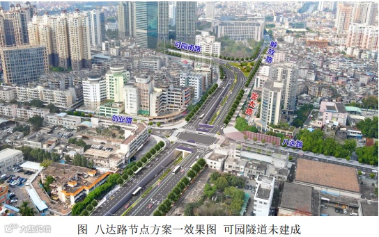 ▶在八达路节点,莞太路主线将以双向四车道隧道下穿八达路,现有圆形过街天桥也将拆除重建;