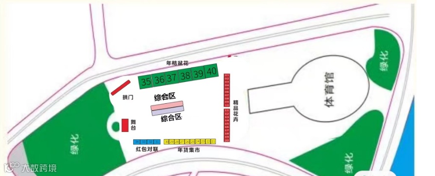 将于1月15日进场,位于宝马路两侧,设摊位90个,摆卖各种迎春花卉和年货