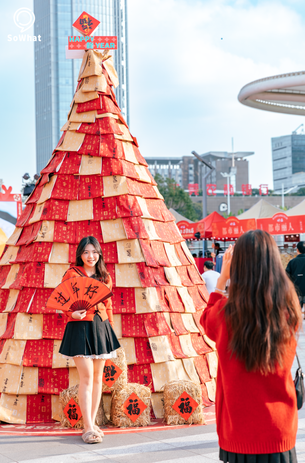 此外,活动现场还特别设计了多个打卡区域,例如“翻篇2025,好运连连墙”区域可让市民写下新春祝福,许下美好愿望。