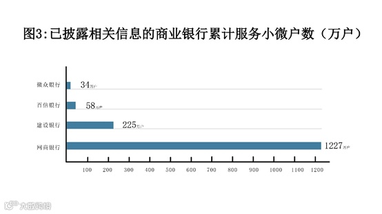 在服务小微企业总数这个数据维度上,网商银行高达其他已公布信息的民营银行的20倍以上,约为建设银行的5.5倍。