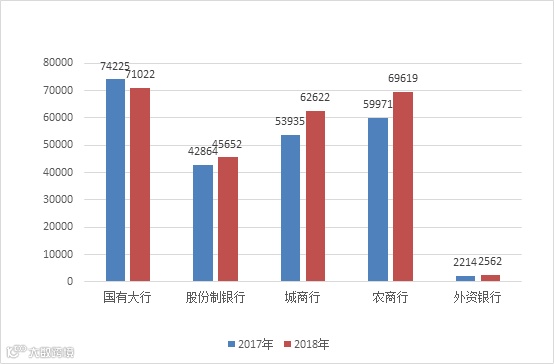 银保监会数据显示:截至2018年末,商业银行小微贷款余额合计约25.22万亿元。其中,城商行、农商行占比明显增加,国有大行贡献率下降。(见图1)。