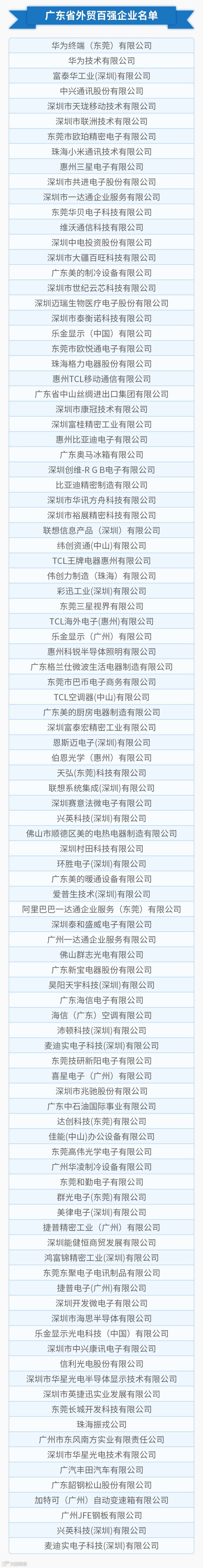 此前,在广东省商务厅指导下,广东省对外经济贸易企业协会在广泛征求意见的基础上,综合考虑企业的外贸总量、贸易方式、商品结构和企业影响力等因素,评定了“2018年度广东省外贸百强企业”。