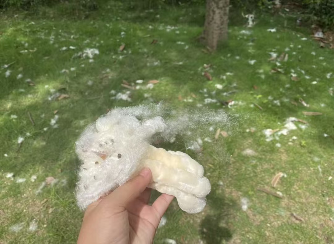 实验一:消防员手中的飞絮遇火轰燃,2秒钟便燃烧殆尽