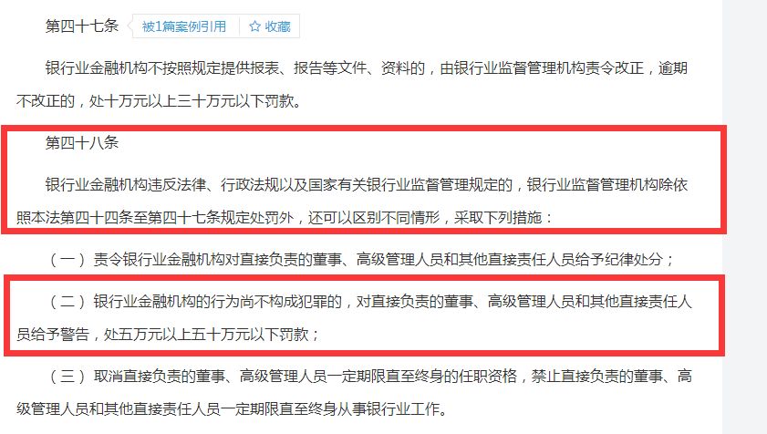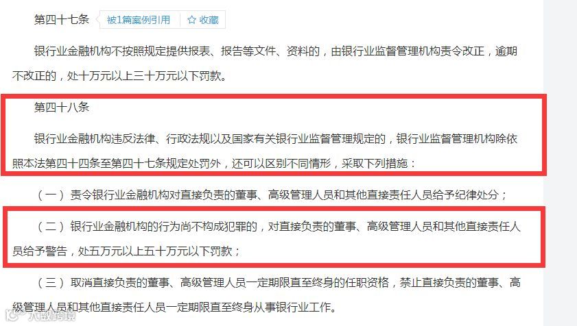 银行业金融机构的行为尚不构成犯罪的,对直接负责的董事、高级管理人员和其他直接责任人员给予警告,处五万元以上五十万元以下罚款;