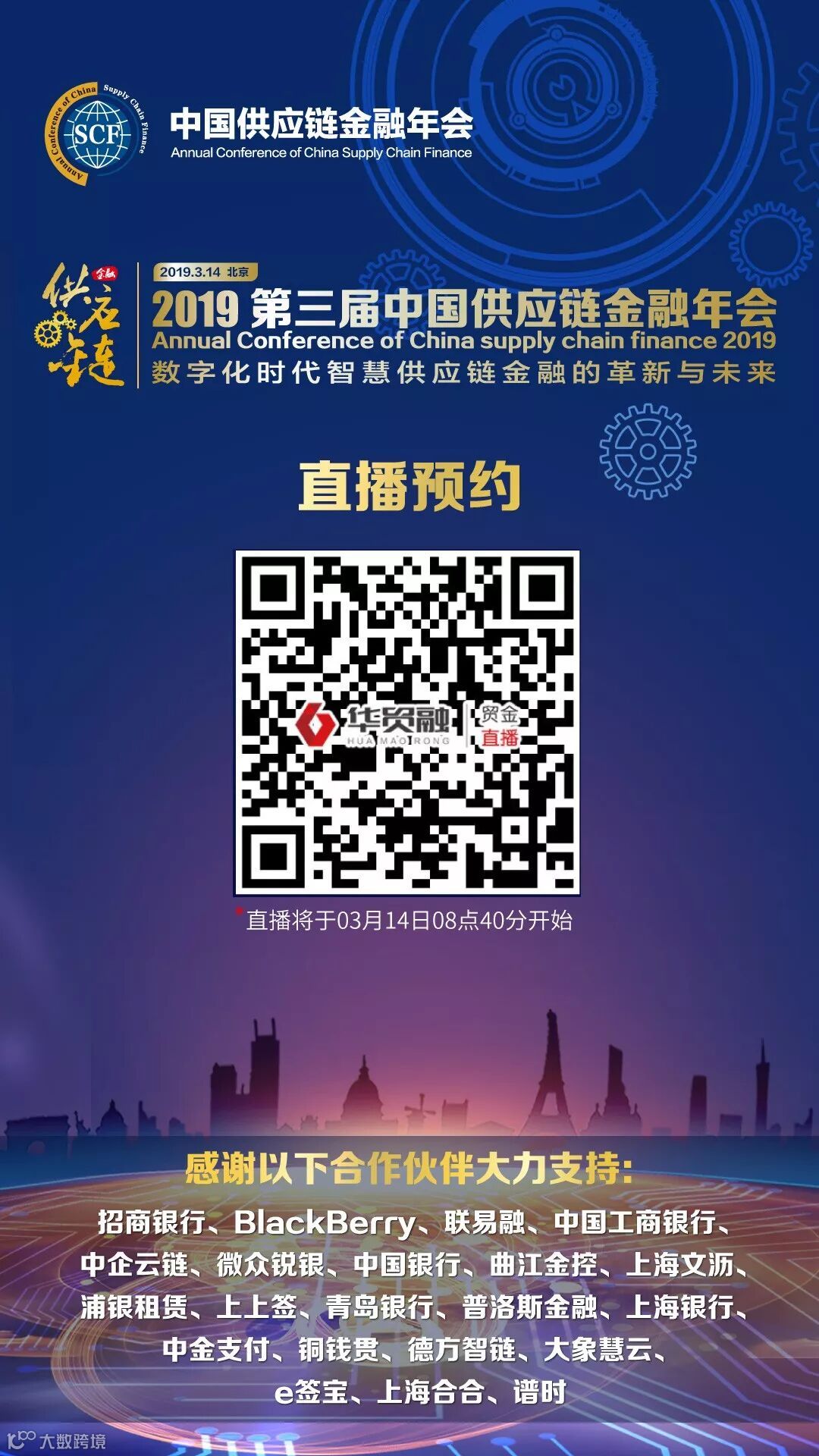 由《贸易金融》杂志、中国供应链金融网、中国贸易金融网主办,中国供应链金融产业生态联盟、中国交易银行50人论坛作为支持单位,携手招商银行、BlackBerry、联易融、中国工商银行、中企云链、微众税银、中国银行、曲江金控、上海文沥、浦银租赁、上上签、青岛银行、普洛斯金融、上海银行、中金支付、铜钱贯、德方智链、大象慧云、e签宝、上海合合、谱时共同举办的“2019第三届中国供应链金融年会”将在北京举行。