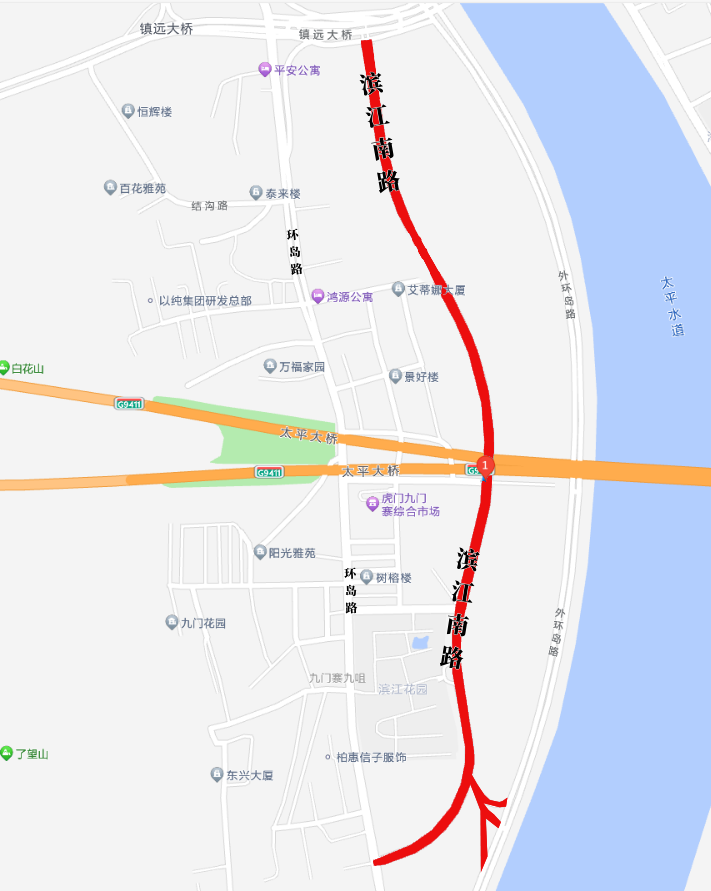 (六)滨江南路(白花山东二路-环岛路、外环岛路,约1.5公里)