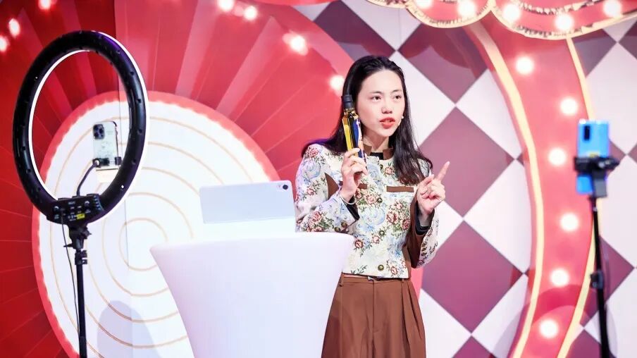 另外一个节目中,大型的舞台“换装”成电商带货直播间,由东莞广播电视台主持人重量级选手和东莞市电商主播大赛得奖选手同台PK,他们分别用盲选出的产品进行现场带货。