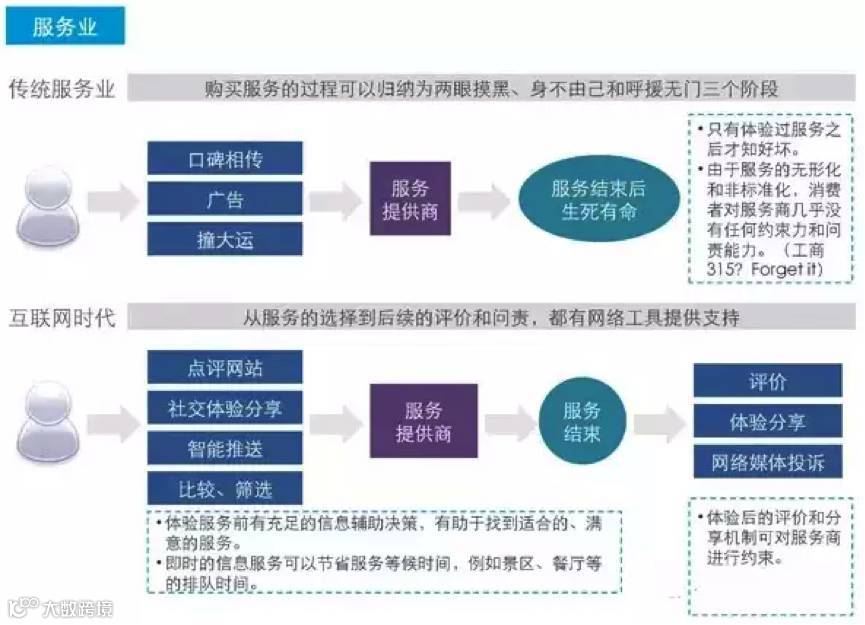 1、互联网为二者建立起强大的问责制,未来一定有个大一统平台对这两个行业进行细致的评判考核。消费者受害的可能性会大大降低。与此同时,这两个行业也将得到超越来自政府的更强有力的监督,不敢擅自作恶。