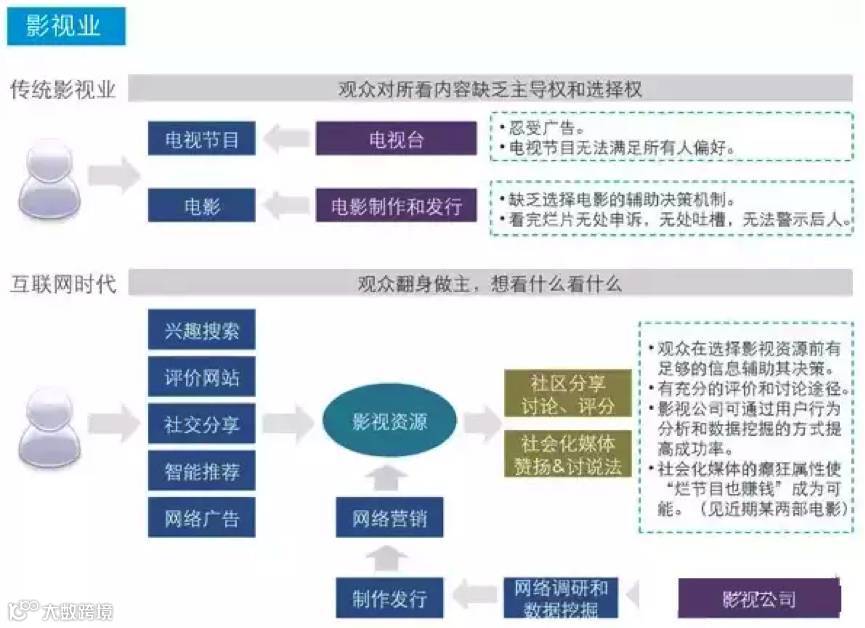 第一,互联网要求电影行业也像电视节目行业那样,让更加优胜劣汰。豆瓣电影和时光网都是非常不错的产品,专门针对电影进行评论,使得消费者的选择时间得以控制。这其实也是一个很好的类似维基百科的案例。