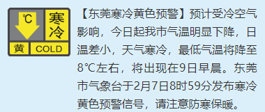 8℃!东莞寒冷黄色预警!还将有阴雨天气…