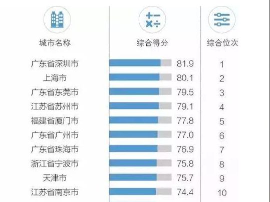 据去年年中发布的2017年中国外贸百强城市排行榜显示,深圳市以81.9分位列榜首;上海市则以80.1分排名第二;东莞市位列第三,得分为79.5。
