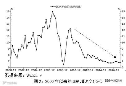 一是企业融资难融资贵问题与经济下行压力相伴而行。金融体系是国民经济的中介部门,金融问题很大程度上是实体经济发展的镜像。企业融资难融资贵问题具有较强的周期性,通常伴随着经济增速明显下滑或者经济增长持续面临下行压力。这一次也不例外,2013年以来持续存在的企业融资难融资贵问题具有极强的顺周期性,其宏观经济背景是经济增速持续下滑,经济下行压力持续较大(如图2所示)。经济增速持续下行,一方面降低了企业投资经营的收益水平,减少了企业有效融资需求,另一方面也提升了企业对融资利率的敏感性,强化了企业对融资利率上升的“痛感”。
