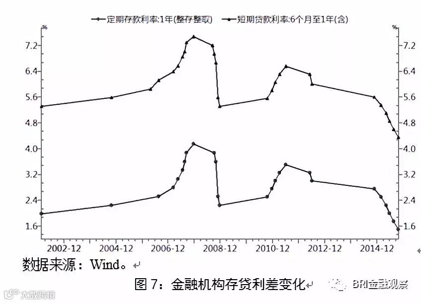 三是银行业金融机构同质竞争,贷款定价和风险管理能力不能有效覆盖所有企业类型。前期由于利率没有市场化,在解除利率管制之后保留了较强的政策引导,银行业金融机构的“存贷利差”相对稳定。自2000年以来,我国银行业1年期定期存款与6个月至1年期的短期贷款利率之间的利差,大部分时间都保持在3%以上(如图7所示)。在经济平稳较快增长的背景下,长期稳定的存贷利差使得银行通过简单的规模扩张就可以获得可观的利润增长(王胜邦和朱太辉,2018)。这种状况导致银行业金融机构缺乏差异化战略定位,竞争过度和竞争不足并存:在大型企业、政府性项目的贷款发放上竞争过度,而在小微企业的贷款上竞争不足,且对小微企业提供的信贷服务主要集中在规模相对较大、资质相对较好的小微企业上。同时,这也削弱了银行业金融机构改善贷款定价和风险管理的积极性,贷款定价精细化能力不足,信贷风险管理过度依赖抵押物,信贷审批和风险管理流程、绩效考核和激励问责机制不能有效地适应小微、民营企业和科技创新企业的特点。此外,一些银行业金融机构产品开发和创新动力不足,产品设计和服务模式同质化,一些信贷产品不能很好地匹配企业的生产经营需要、资金周转周期等。随着经济下行压力持续较大,银行不良贷款持续暴露,在没有可靠的贷款定价和风险管理保障的基础下,一些银行业金融机构的风险偏好明显降低,对于企业特别是对于小微企业的贷款能力和贷款意愿不断下降。