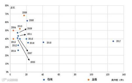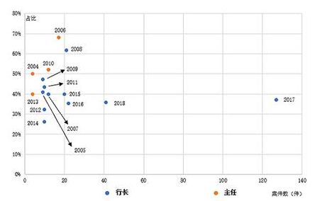 对所有案件做分年度分析,行长与主任为历年所有被行政处罚职位中最多。