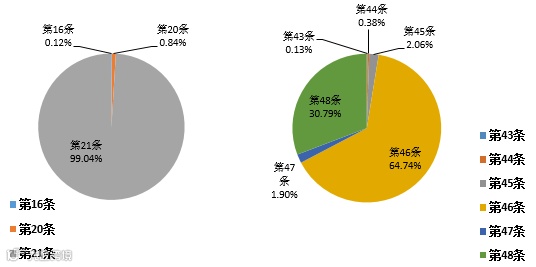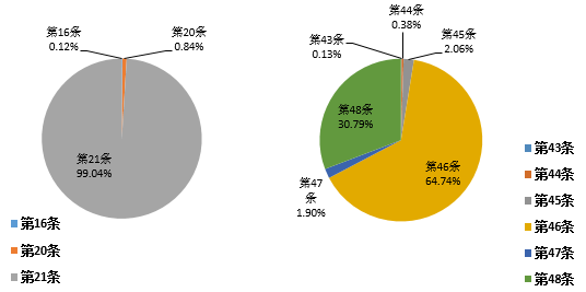 总体来看,违反《中华人民共和国银行业监督管理法》中的条款以第21条、第46条、第48条为数量前三。其中,第21条着重于银行应严格遵守审慎经营原则。
