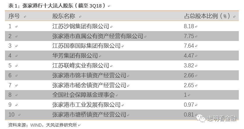 张家港行前身是张家港市农村信用合作社联合社。2001 年,国务院决定对张家港等地的农村信用社进行股份制改造、筹建农村商业银行。张家港行第一大股东为沙钢集团,持股仅为8.18%,其余股东多为张家港市国资和民资企业。持股分散有利于张家港行保持独立的公司治理结构,也便于在当地开展小微业务。
