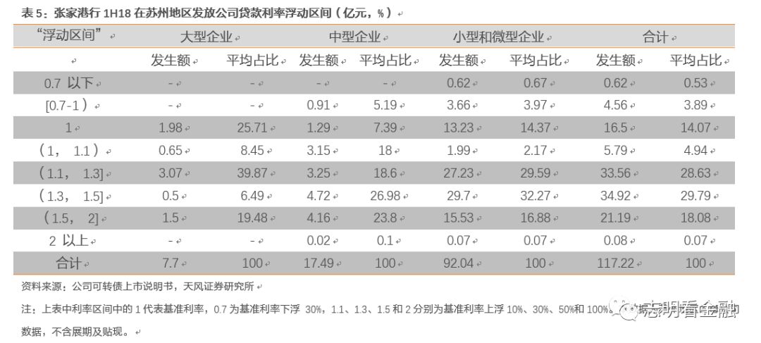 2018年1-6月,张家港行在苏州地区发放的公司贷款(不含贴现)117.22亿元,其中对中小微型企业发放的公司贷款为109.52亿元,占比高达93.43%。对中小微型企业发放的公司贷款中,基准利率上浮 10%以上的贷款占比 77.32%,基准利率及基准下浮的贷款占比 18.00%。