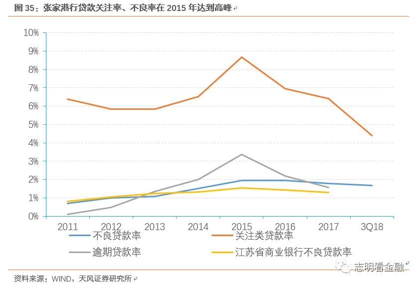 截至3Q18,张家港行不良贷款率为1.67%,关注类贷款率4.4%,关注类贷款率在A股上市农商行中仍然较高。