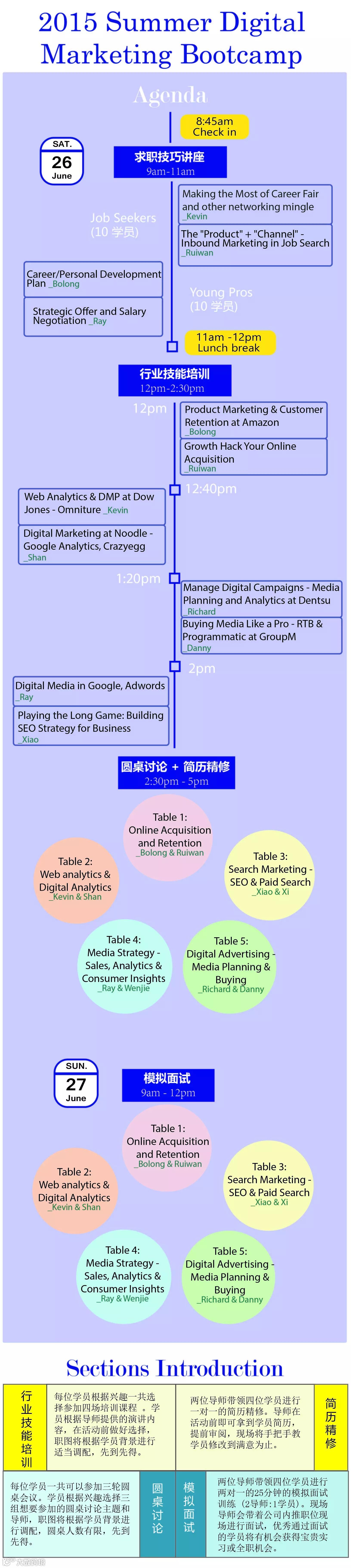 2. 行业技能培训:每位学员根据兴趣一共选择参加四场培训课程 (因为同一时间有两场相似的主题同时进行)。学员根据导师提供的演讲内容,在活动前做好选择, 职图将根据学员背景进行适当调配,先到先得