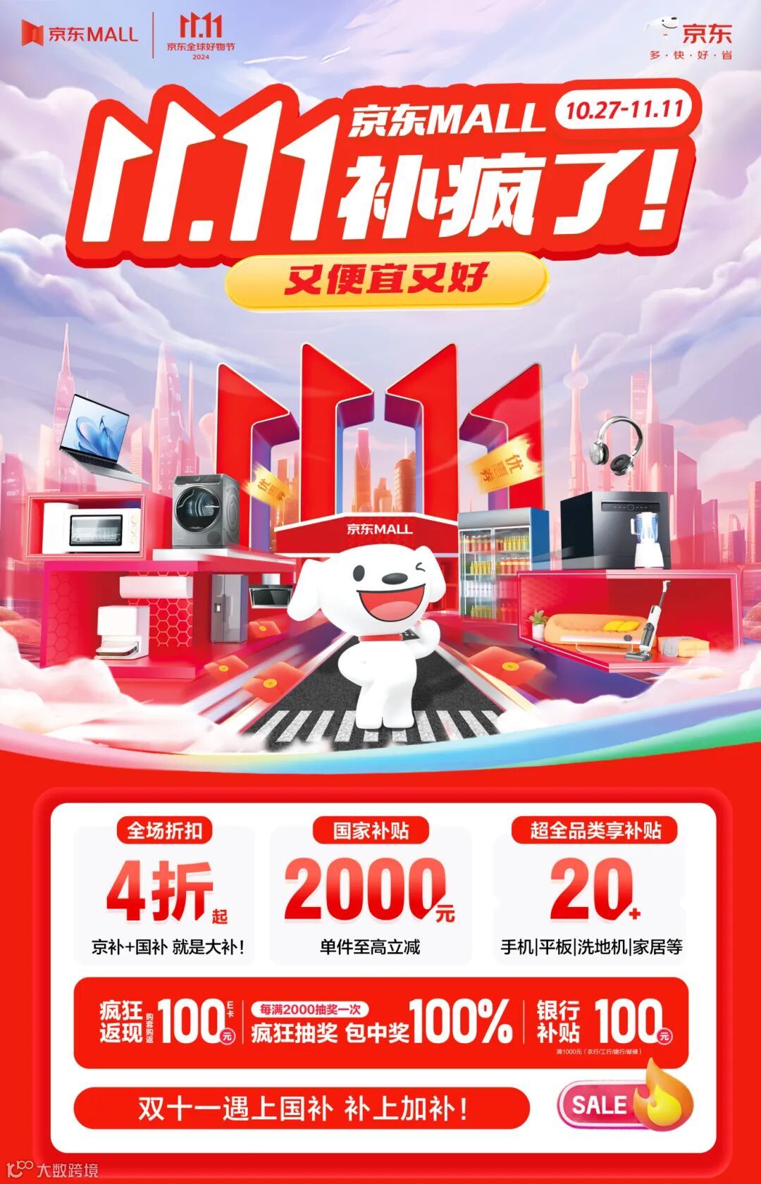 东莞京东MALL今年11.11放大招啦:叠加国补,补上加补!京东联合百大核心厂家,多重福利叠加全场商品4折起!看得见摸得着的产品,你还担心啥?快来MALL里逛逛吧,超全品类任你挑任你选!