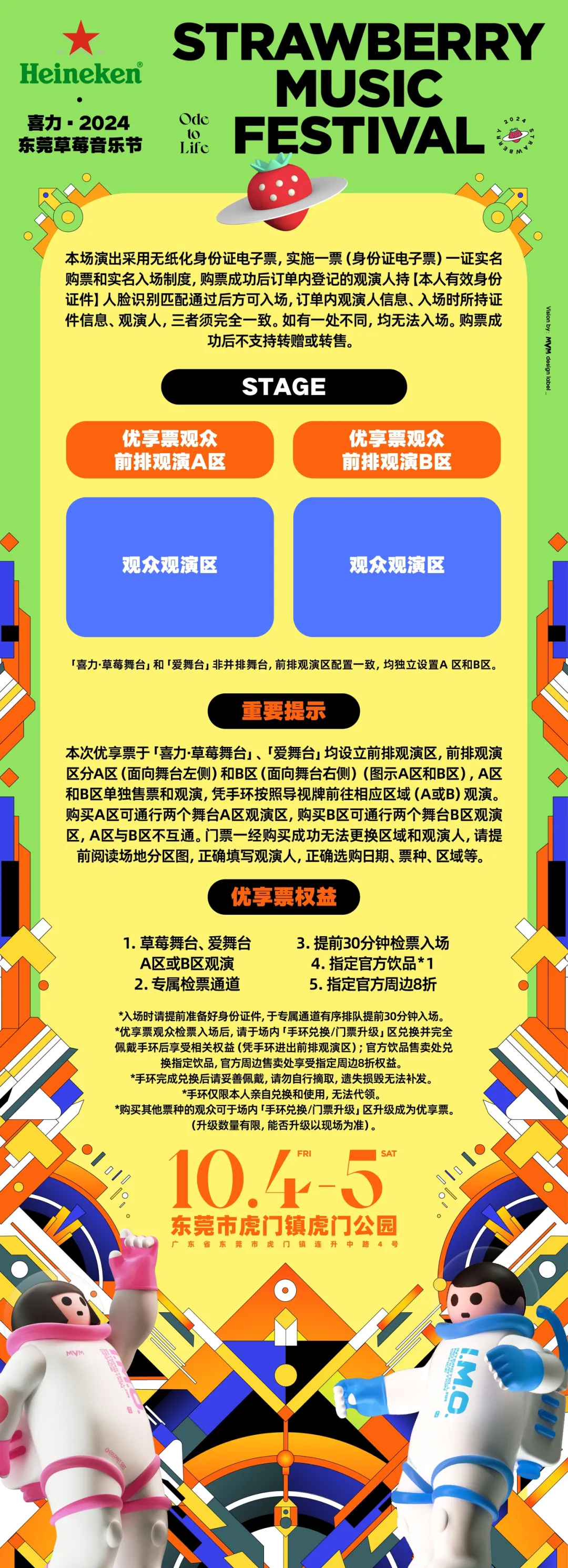 -音乐节现场请注意人身财产安全,文明观演,禁止乱扔垃圾,请自觉保护场地卫生环境,禁止翻越护栏等隔离设施,禁止向舞台投掷任何物品,演出结束后,请按照现场指引和工作人员引导有序退场,请勿拥挤、逗留。如遇紧急情况请立刻联系现场安保人员或前往乐迷服务中心寻求帮助。