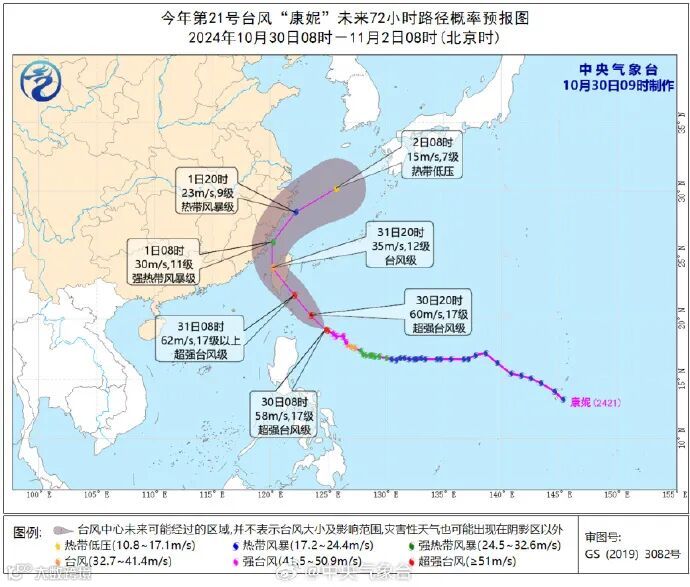 今年第21号台风“康妮”已于今天(30日)早晨由强台风级加强为超强台风级,早晨5点钟其中心位于台湾省台东市东南方向约580公里的西北太平洋洋面上。