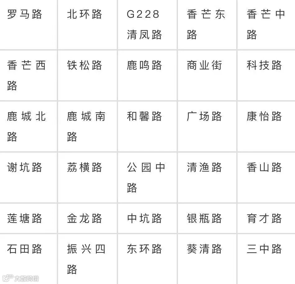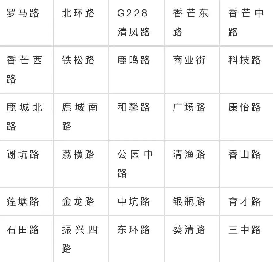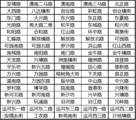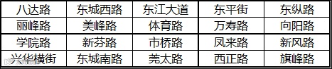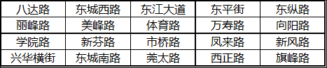 永兴路、雅苑路、莞都路、广场路、觉华路、福田路、东港路、滨江路以及滨河东路。