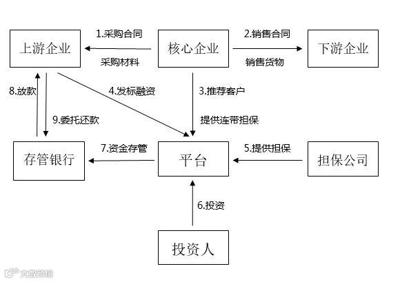 ● 应收账款融资模式:上游的中小企业将核心企业给它的赊账凭证转让给金融机构,进而取得融资用以继续自身再生产,若到还款期限中小企业不能还款,则金融机构可凭应收账款向核心企业收款;