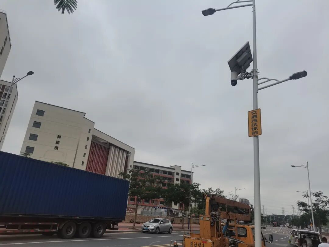 在月湖路,塘厦公安交警装上了2套新型电子抓拍设备——太阳能移动式违停球,主要针对车辆违法停车等违法行为进行查处。