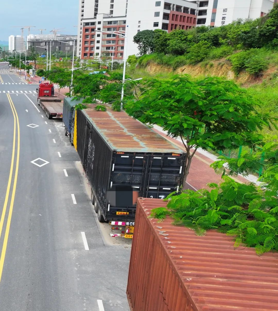 到目前为止,违停货柜已全部清理完成,路面安全隐患基本排除。