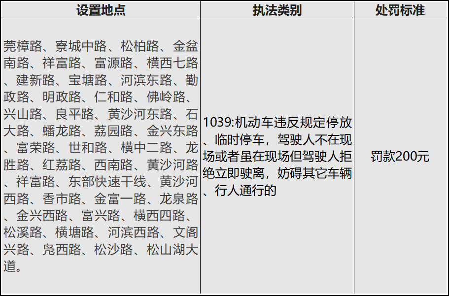 东莞市公安局交通警察支队寮步大队决定在警用汽车、警用摩托车上安装车载移动式交通违法高清视频取证设备,对机动车在辖区道路违反规定停放等交通违法行为予以抓拍查处。现将具体执法路段公告如下: