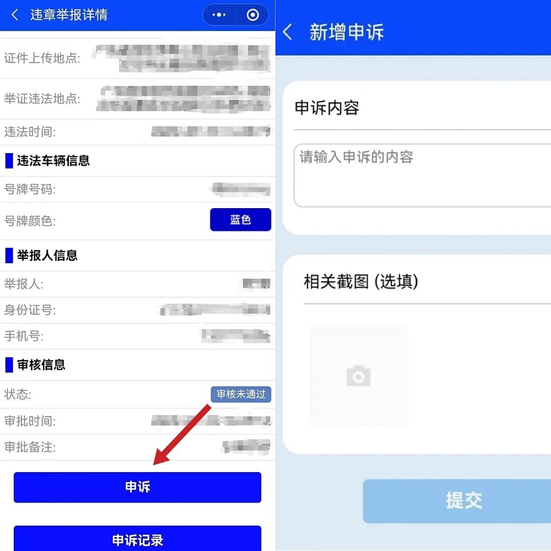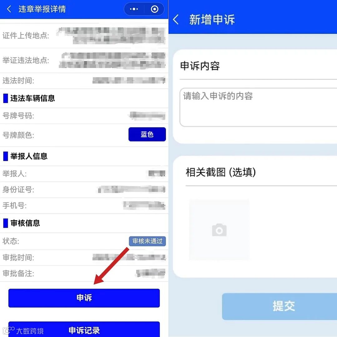 “申诉”功能的使用: