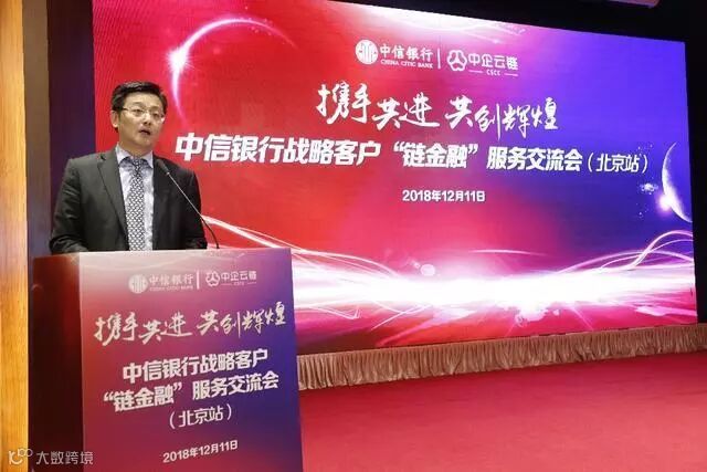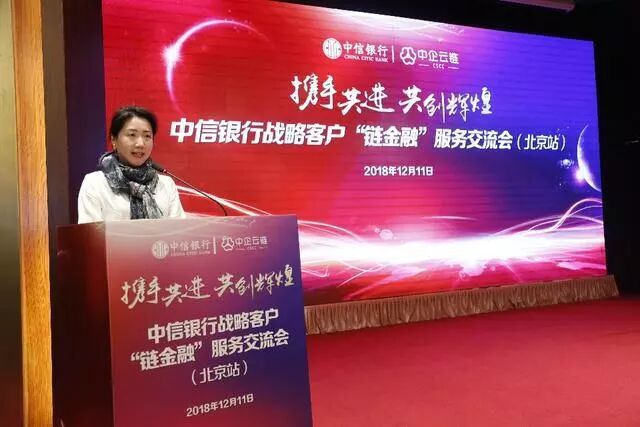 中信银行总行营业部王志刚总经理助理表示,“中信链金融”是我行战略客户服务的重要子品牌,中信银行始终将供应链金融作为全行战略客户服务的重点业务加以推动。2018年8月,中信银行将云链融资模式列为全行一类创新项目,全行重点推广。未来中信银行将联合中企云链,将大企业优质信用向上游供应链延伸,用“金融活水”推进产融结合,服务实体经济,“点信成金,链信未来”,共同打造产融生态圈。