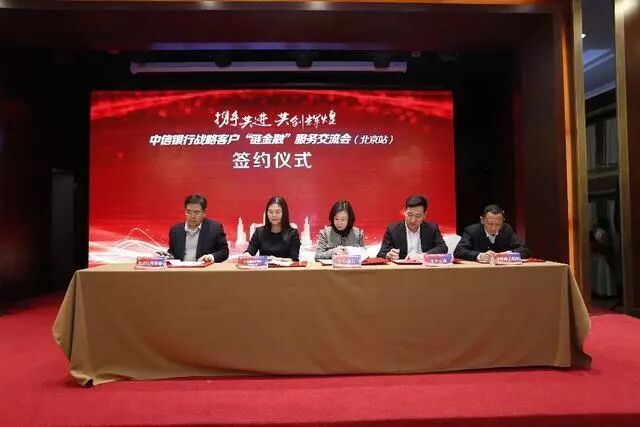 当日,中信银行总行营业部和中企云链分别与中电建建筑集团、中铁建工集团、北京江河幕墙的企业代表签署了三方意向合作书,由中信银行总行营业部提供资金融通、中企云链提供平台支撑,共同服务实体经济。在随后的中信“链金融”服务体系(北京站)发布仪式上,中信银行总行、中信银行总行营业部、中企云链及相关企业领导共同见证了中信银行北京地区“链金融”服务的正式启动,开启互惠合作新篇章。