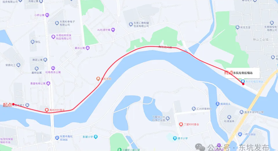 对东坑镇角社沿河路(起点永晟混凝土沿河人行道-终点东坑垃圾压缩站沿河人行道)实施分段封闭施工。